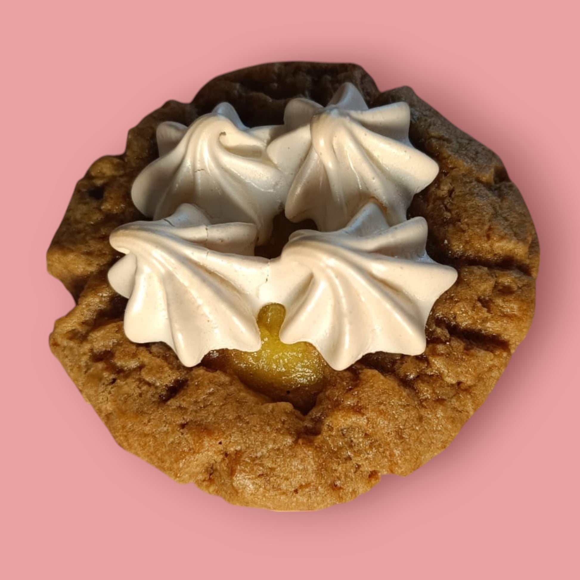Cookie au délicieux cœur de crème au citron maison, recouvert de délicates meringues françaises croustillantes.