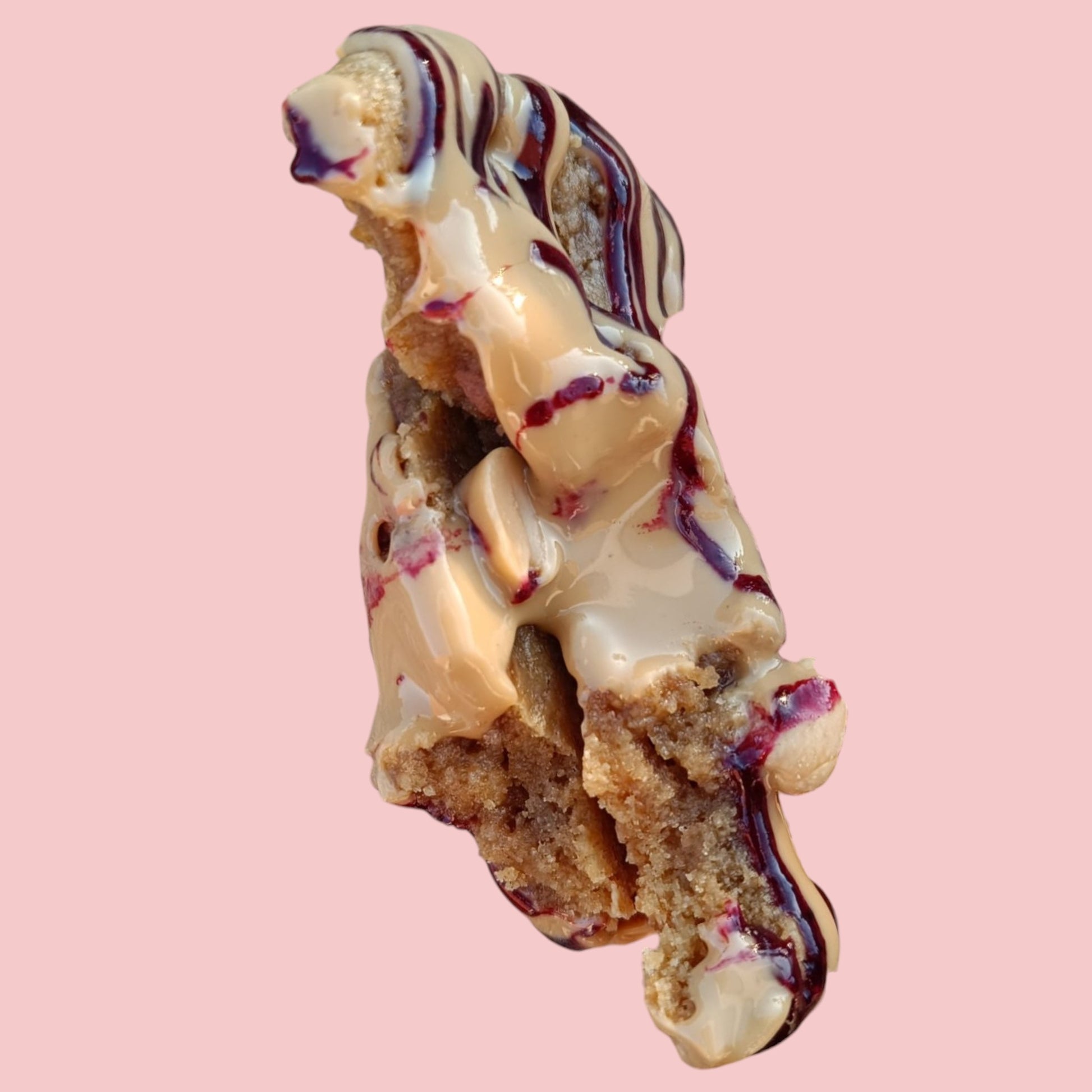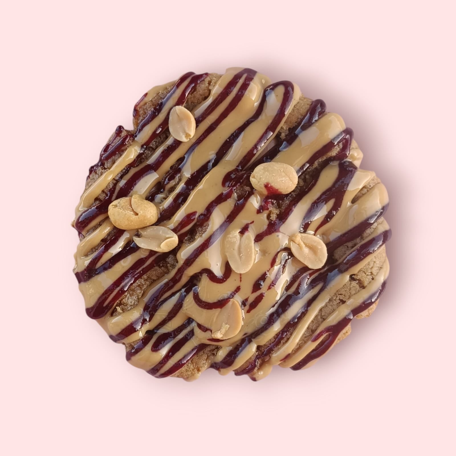 Découvrez notre délicieux cookie beurre de cacahuète et gelée de myrtille !