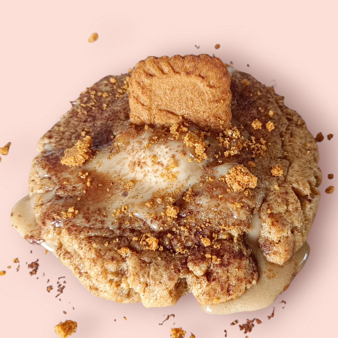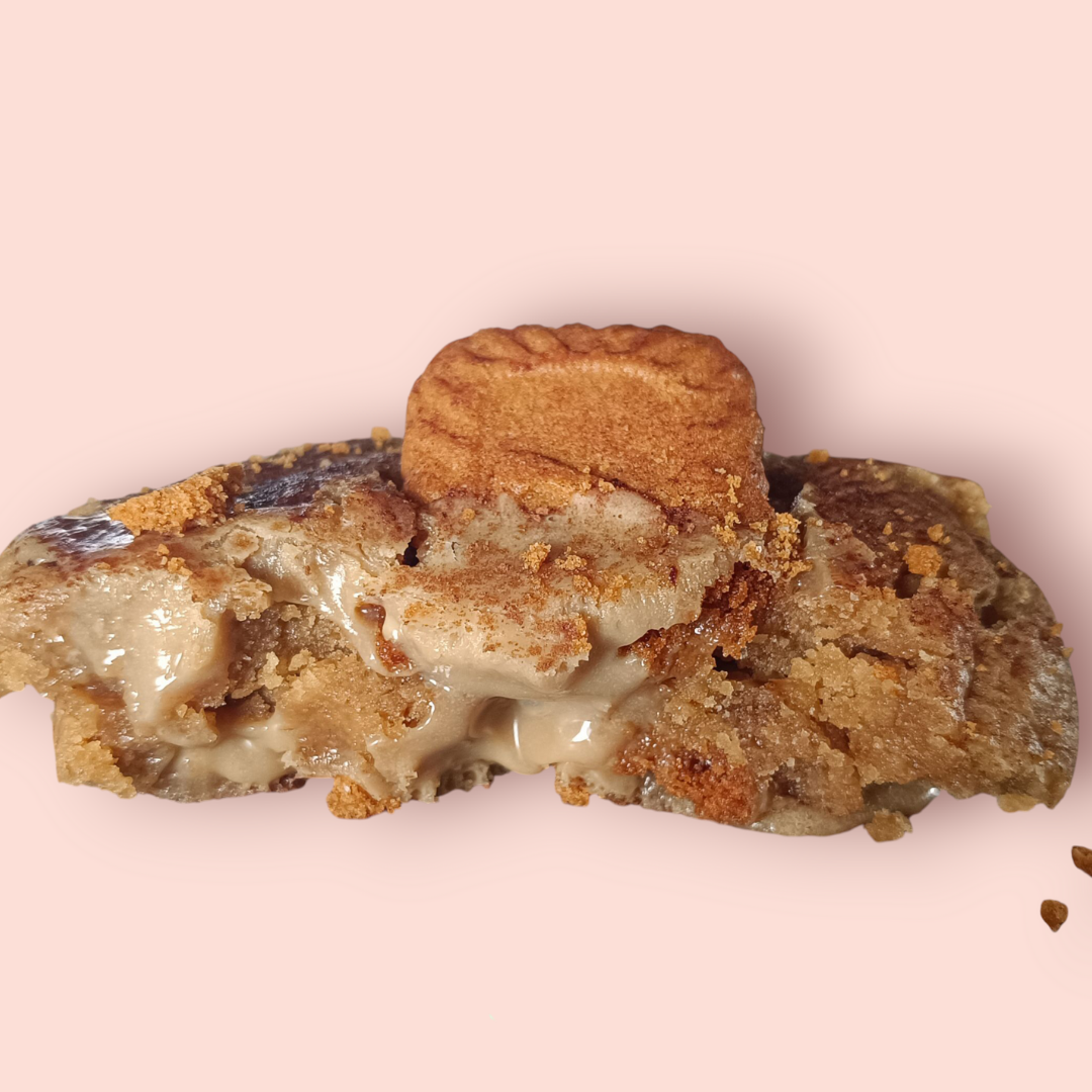 Découvrez notre cookie moelleux, fourré d'une pâte à tartiner goût tiramisu maison (comme toujours), le tout recouvert de brisures de spéculoos et saupoudré de cacao amer...