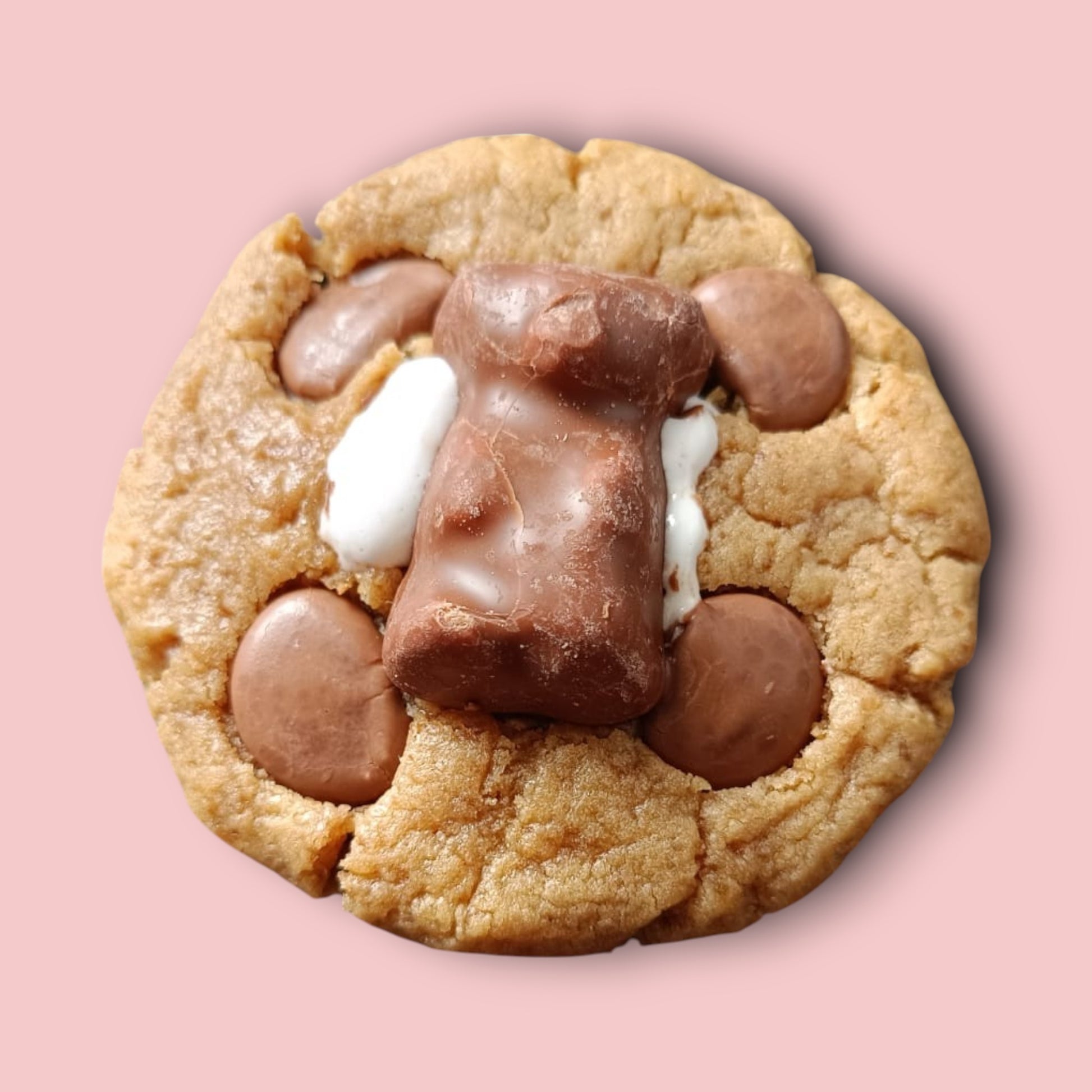 Ce délicieux cookie au cœur tendre de guimauve et des pépites de chocolat au lait pour une expérience croustillante et fondante en bouche. Le tout est recouvert d'un ourson à la guimauve pour un plaisir gourmand supplémentaire. Dégustez notre Cookie ourson guimauve pour une pause sucrée irrésistible.